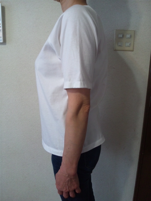 | PCもミシンも不調だったんですね^^; そんな中、ちゃんと作って送っていただき、本当に感謝です。 「50代後半」とおっしゃいますが、とてもスレンダーで素敵なプロポーションをなさってますね。^^ 羨ましいです。 ところでこのTシャツは、作りやすさを第一に考えて、袖を「ラグランスリーブ」、襟を「二つ折の処理」で仕上げています。 この二つが、どうもイカリ肩の方には若干相性が良くないようで、襟の端がちょっと浮いてしまいますね。 以前も書きましたが、パタンナーさんもそんなに気にならないと言ってますので、今回は「カンタンさ」をとって、イカリ肩の方への注意書きを明記した上で、この方式で進めたいと考えております。 さて、これでお願いした方々全員の試作&試着が終わりました。 皆様、本当にありがとうございました。 いろいろな体型の方に試着していただいたおかげで、さきほどの襟の問題など、明確になった点がいろいろありました。 今後のスケジュールは、【くわしーい作り方解説】を編集して、まずは大人用をリリースしたいと考えております。 その後、子供用に着手する予定です。 開発に長らく時間がかかっておりますが、その分良いものをご提供できると思っておりますので、どうぞお楽しみに。 |