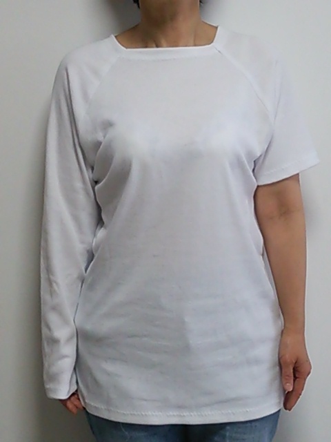 では前回の襟の修正と、今回の袖の修正、そしてご希望の多かった着丈と半袖の丈を変えてもう一度全体を見ていただきます。 襟は直線で二つ折りできるようになったので、かなり楽に作れると思います。 着丈は前回の短い丈と、こちらのお尻がかくれるくらいの丈の2種類。 袖丈は、今回の半袖、長袖のほかに、五分袖、七部袖の合計4種類のラインを描くことによって、好きな丈を選んでいただこうと思っています。 |