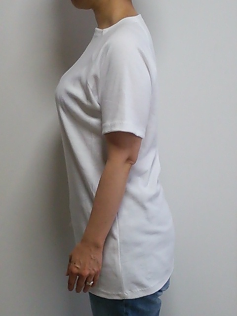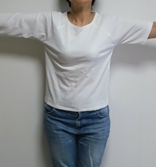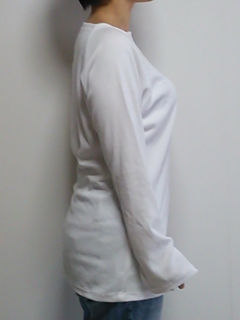 こちらは修正後の袖。ゆるいカーブでつなげたため、「ひきつれ皺」はなくなりました。 |